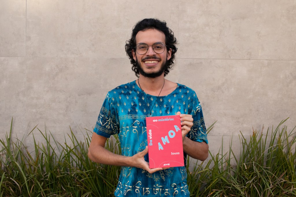 Lucas Souza com seu livro “Da vida ao mistério: amor”.
