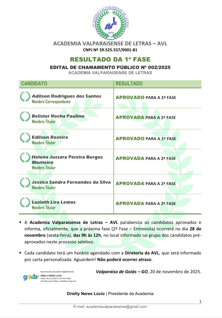 Informamos ao público em geral que a 1ª fase do Edital de Chamamento Público nº 002/2025 foi oficialmente concluída.
